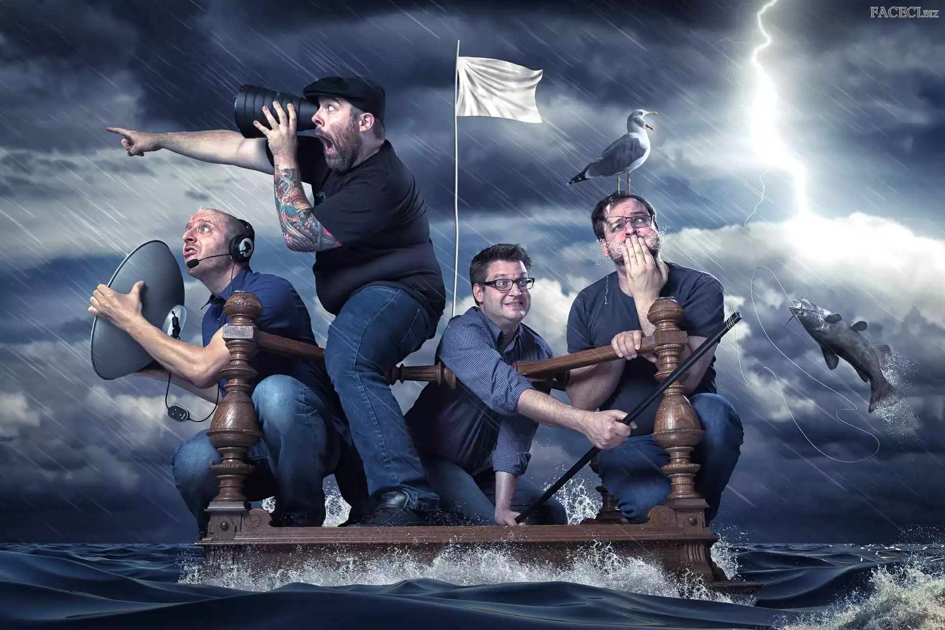 Tratwa, Mebel, Woda, Mężczyźni, Ryba - faceci.biz